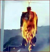 | El Judas.- Se reunían los mozos y se hacia un muñeco con ropa relleno de paja, cenaban, se hacia el Judas, y se colgaba del poste más grande que se encontraba, normal-mente se hacia un pozo en la plaza para hincar el poste. Se solía velar (mientras seguía la juerga) pues era “normal” que vinieran los mozos de otro pueblo y te lo robaran. El Domingo de Pascua después de la Misa se quemaba el muñeco entre la algarabía de los chicos. |